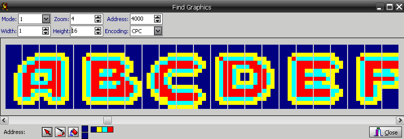 Bien, maintenant allons voir en #4000 ce qu'on y trouve avec le find gfx de winape: