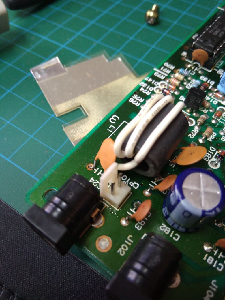 Comme sur la photo ci-dessous, vous pouvez voir que la rondelle laisse un vide intersidéral. A ce moment je me suis dit, je vais souder comme ça, et si cela ne marche pas, bricoller un "pont"... j'ai transpiré très fort mais finalement ça a marché comme ça, c'est grâce au bon état du PCB :P